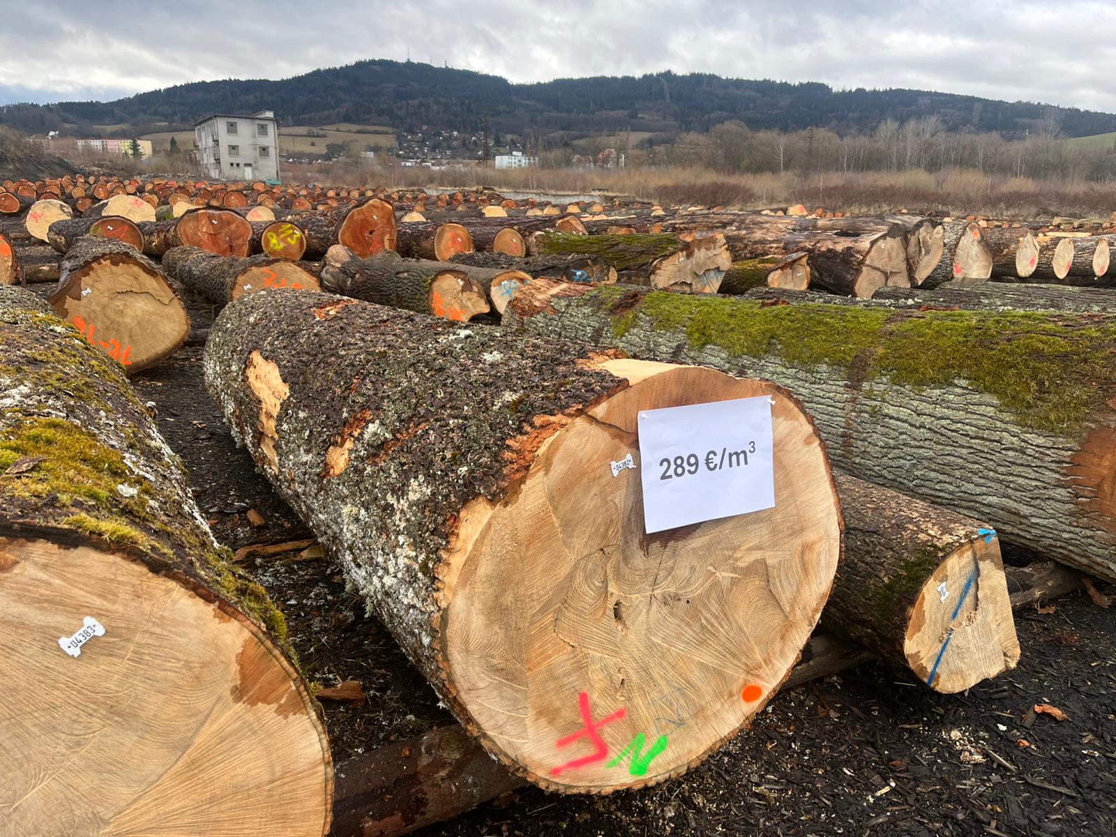 Ač nejsme typickým listnatým regionem, nejkvalitnější dub byl vydražen za 17.921,-Kč/m3 (739,-Eur/m3), jasan za 7.008,-Kč/m3 (289,-Eur/m3) a jilm za 7.760,-Kč/m3 (320,-Eur/m3).