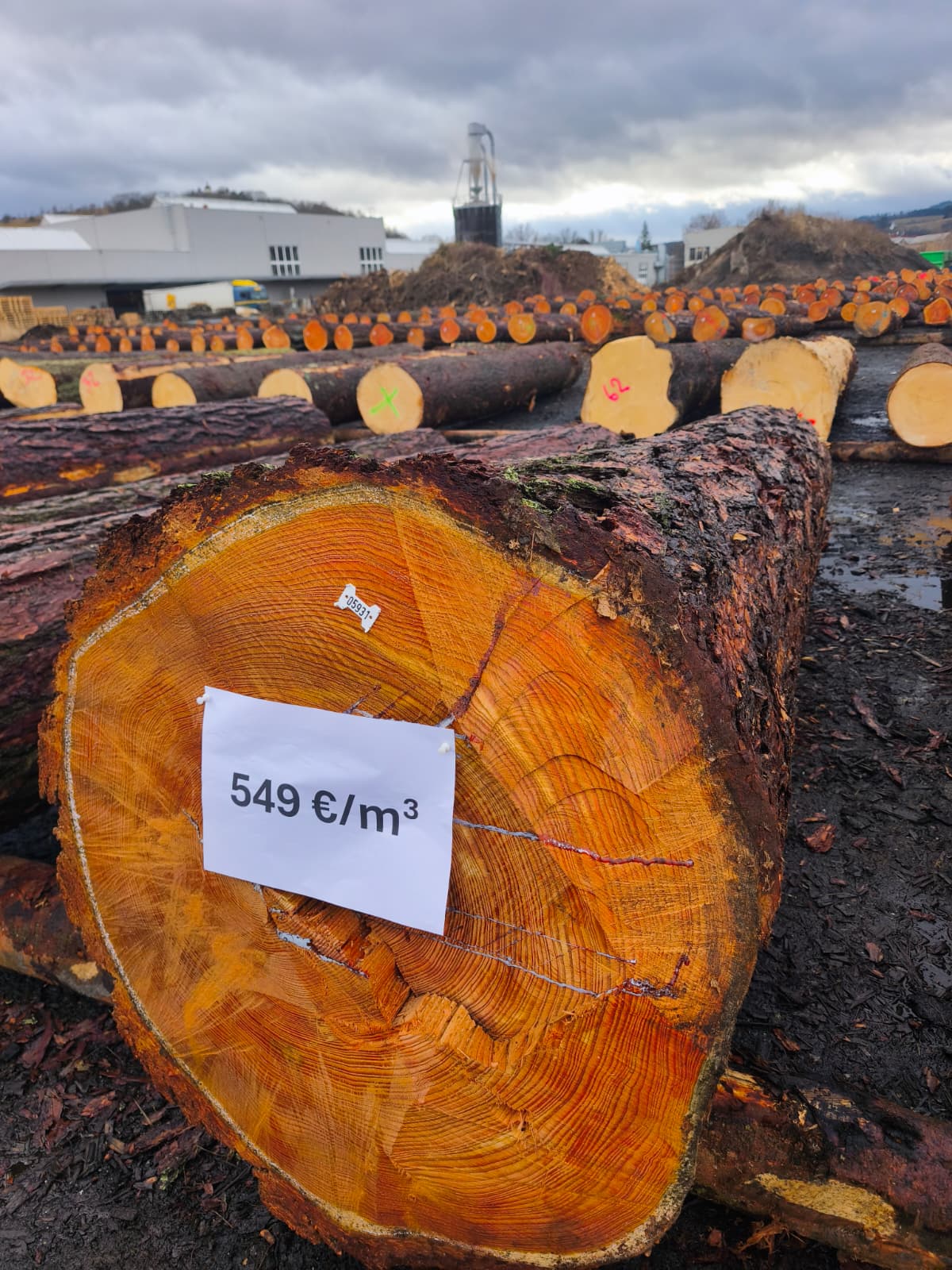 Nejlepší modřín se prodal za 13.313,- Kč/m3 (549,-Eur/m3).
