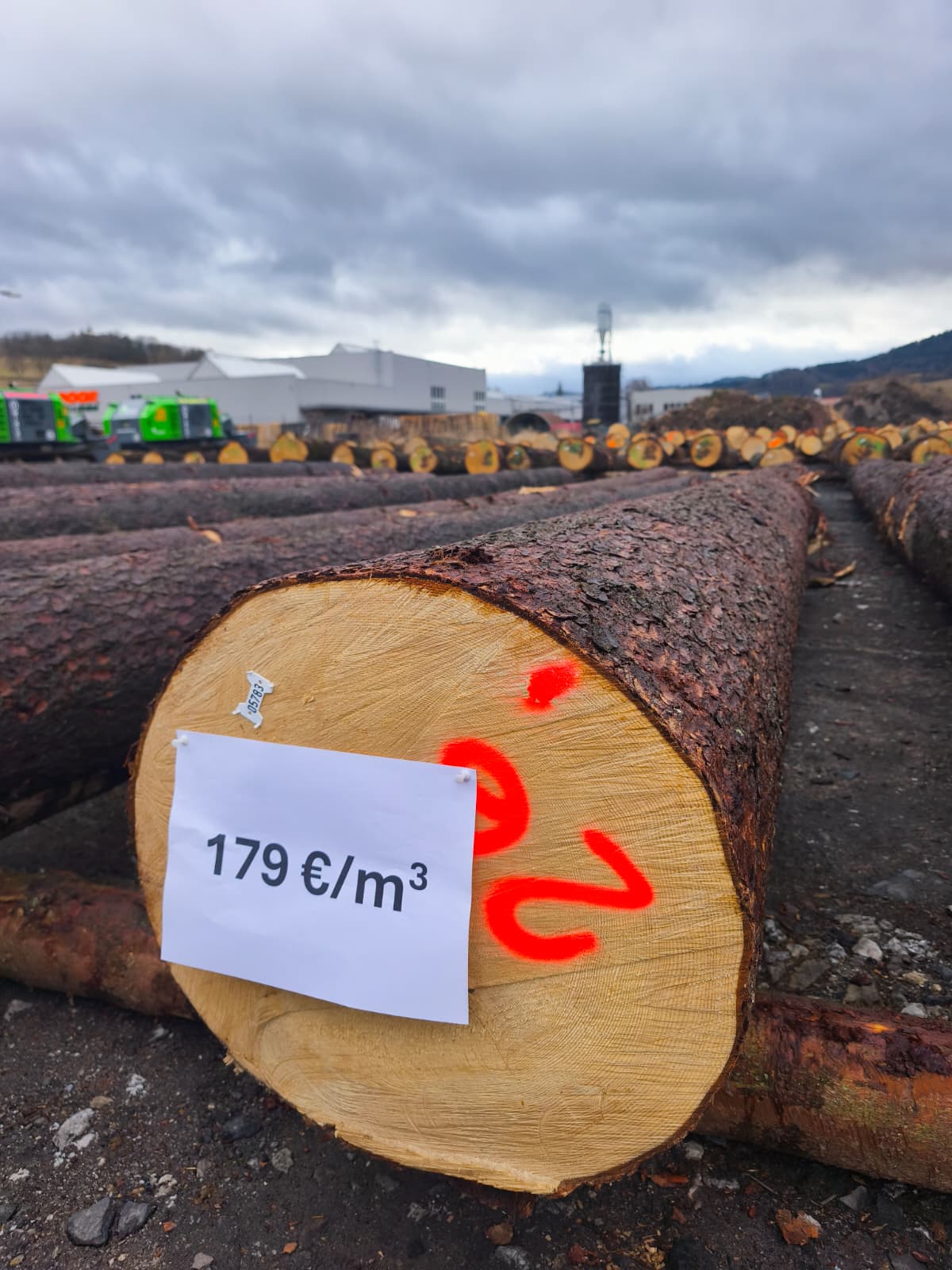 U smrku byla nejvyšší cena 4.350,-Kč/m3 (179 Eur/m³), u douglasky 4.486,-Kč/m3 (185 EUR/m³).